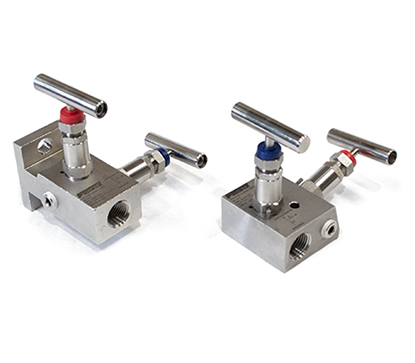 Los manifolds de 2 vías son aptos para la instalación de manómetros, presostatos y transmisores de presión estática.